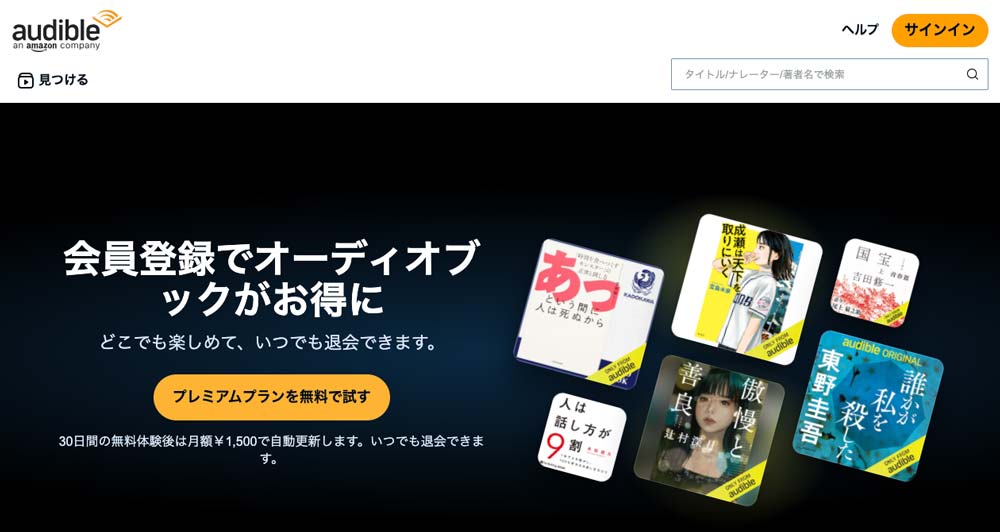 Audible(オーディブル)が30日間無料で試せる!
